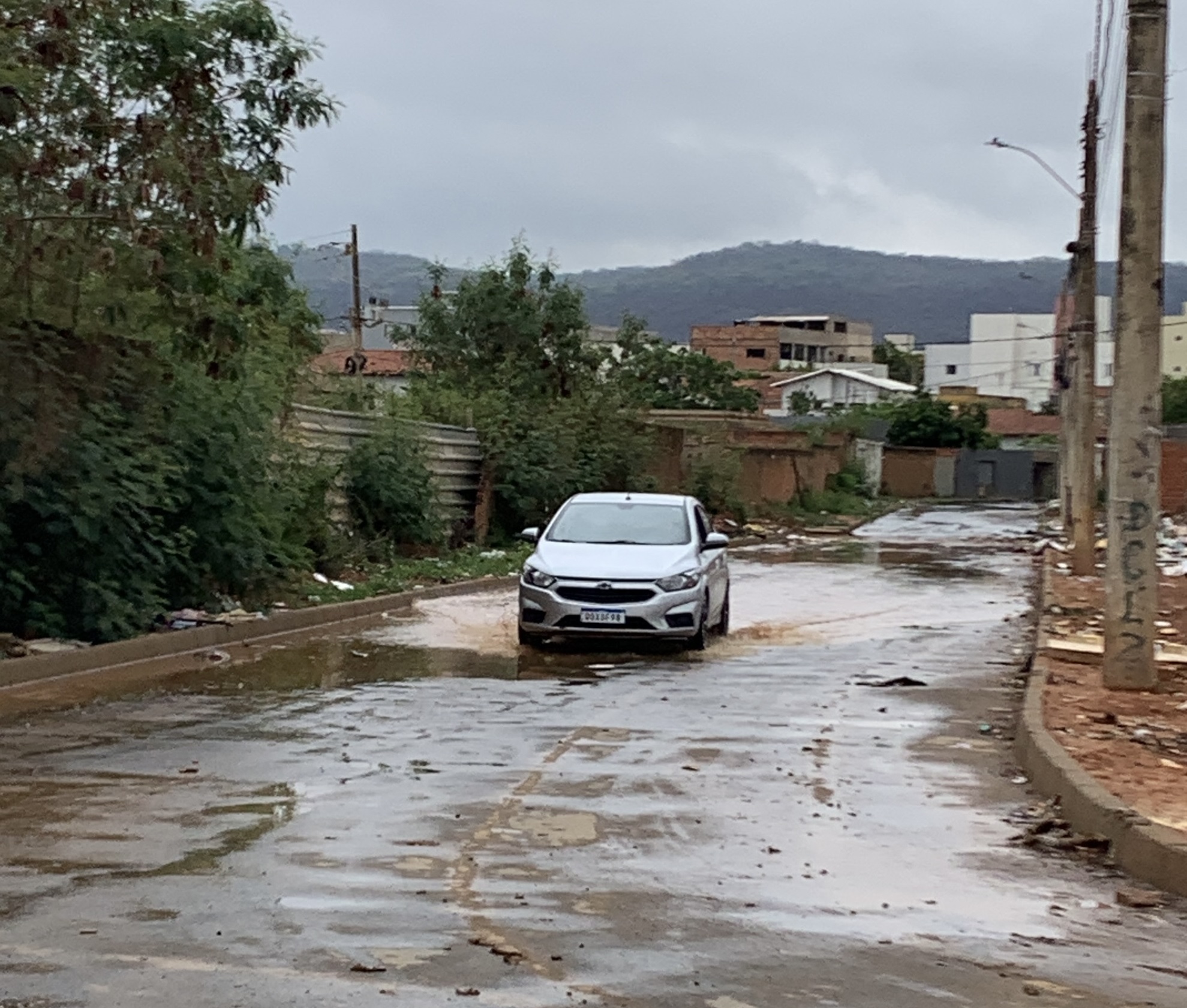 Rua Herculano Miranda, no Canelas 2, alaga após pavimentação mal executada